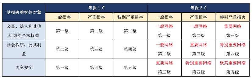 同時根據受害客體對象進行等級評定,等保2.0加入了網絡劃分: