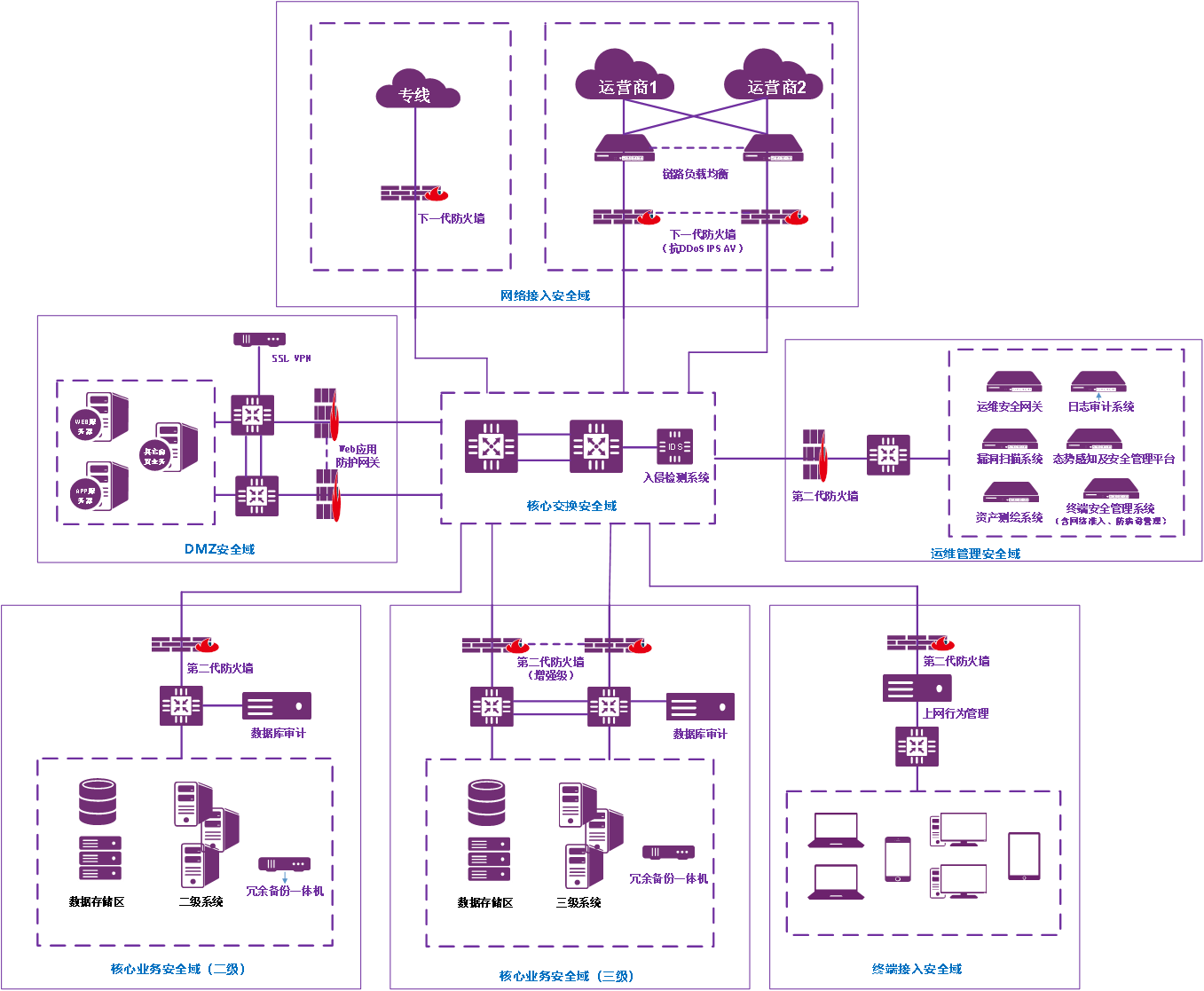 方案設(shè)計階段,靈狐科技以《網(wǎng)絡(luò)安全等級保護(hù)基本要求》、《網(wǎng)絡(luò)安全等級保護(hù)安全設(shè)計技術(shù)要求》等國家標(biāo)準(zhǔn)為依據(jù),并結(jié)合行業(yè)特性要求、監(jiān)管單位要求、用戶提出的安全需求進(jìn)行系統(tǒng)性方案設(shè)計。在滿足相應(yīng)等級安全物理環(huán)境、安全通信網(wǎng)絡(luò)、安全區(qū)域邊界、安全計算環(huán)境、安全管理中心及管理部分要求基礎(chǔ)上,最大程度發(fā)揮安全措施的保護(hù)能力。